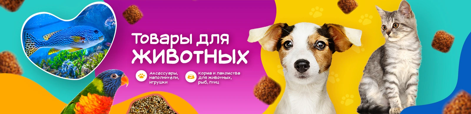 - Корма для птиц, грызунов, рыб