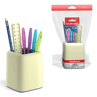 Подставка пластиковая для пишущих принадлежностей Erich Krause Forte, Pastel, белый с желтой вставкой