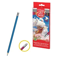 Пластиковые цветные карандаши с ластиком шестигранные ArtBerry® 12 цветов, стираемые