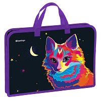 Папка с ручками 1 отделение, А4 Berlingo "Astro Cat", 340*245*40мм, пластик, на молнии