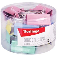 Зажимы для бумаг 41мм, Berlingo, 12шт., цветные, пластиковый тубус BC1241m
