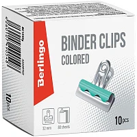 Зажимы-бульдоги для бумаг 32мм, Berlingo, 10шт. цветные, картонная коробка BC1232g