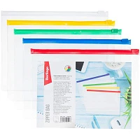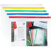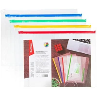 Папка-конверт на молнии Berlingo, А4, 150мкм, прозрачная, ассорти. AKm_04109