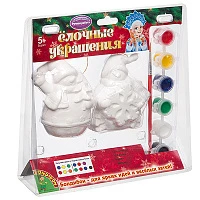 Набор для творчества Bondibon "Ёлочные украшения" с 3-мя ФИГУРНЫМИ УКРАШЕНИЯМИ, красками и кисточкой