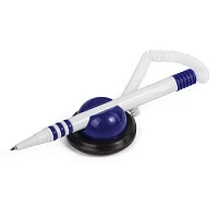 Ручка шариковая настольная BRAUBERG "Стенд-Пен", СИНЯЯ, пружинка, корпус белый/синий, линия письма 0,5 мм, 141353