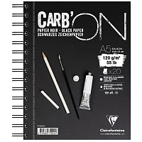Скетчбук-тетрадь 20л. А5 на гребне Clairefontaine "Carb'ON", 120г/м2, мелкозерн., черный