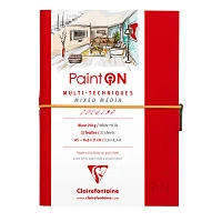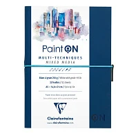 Скетчбук для смешанных техник 32л., А5, на сшивке "Paint'ON", 250г/м2, легкое зерно, резинка, кожзам