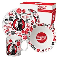 Набор посуды в подарочной упаковке "Кока-кола", Паттерн "Черно-белый", 3 предмета, фарфор