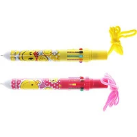 Ручка автоматическая 10-ти цветная корпус ассорти с рисунком смайлики на шнурке "Darvish"