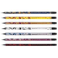 Карандаш ч/г с ластиком "Darvish" из черного дерева корпус цветной с рисунком