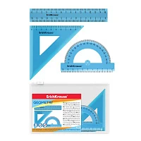 Набор геометрический малый Erich Krause Standard (линейка 15см, угольник 9см/45°, транспортир 180°/10см), голубой, в zip-пакете
