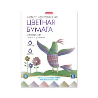 Металлизированная цветная бумага мелованная односторонняя на клею ErichKrause@, А4, 6 л, 6 ц, игрушка-набор для детского творчества