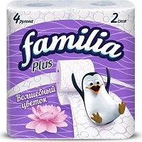 Бумага туалетная Familia Plus 4 рулона, 2-х слойная, Волшебный цветок *16