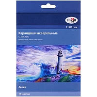 Карандаши акварельные Гамма "Лицей", 18цв.+кисть, заточен, картон, европодвес. 221118_03
