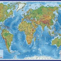 Карта МИР Физический 1:29 млн. 101*69 см (с ламинацией). КН038