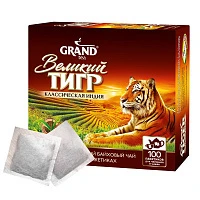 Чай Великий Тигр Отборный черный, 100 пакетиков с ярлычками