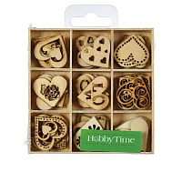 ДЕКОР ИЗ ДЕРЕВА. НАТУРАЛЬНЫЙ, НАБОР №27 "СЕРДЕЧКИ" В ДЕРЕВЯННОМ ОРГАНАЙЗЕРЕ