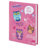 Блокнот МАЛЫЙ ФОРМАТ (110х147 мм) А6, 80 л., твердый, клетка, ЮНЛАНДИЯ, "Совушки", 111618