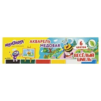 Краски акварельные ЮНЛАНДИЯ "ВЕСЕЛЫЙ ШМЕЛЬ", 6 цветов, медовые, С КИСТЬЮ, картонная коробка
