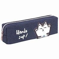 Пенал ЮНЛАНДИЯ, 1 отделение, полиэстер, "Сat", синий, 19х4х6 см, 270278