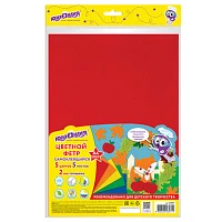 Цветной фетр для творчества А4 ЮНЛАНДИЯ САМОКЛЕЯЩИЙСЯ, 5 ЯРКИХ ЦВЕТОВ, с европодвесом, 662051