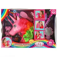 Голова-манекен единорог 25 см, с цветной гривой, 20 акс, кор КАРАПУЗ