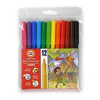 Фломастеры KOH-I-NOOR ЗВЕРИ 12 цв. пласт.упак. треуг. корп. смываемые №771002AB04TE