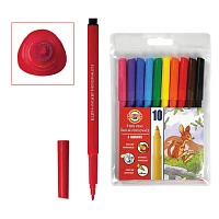 Фломастеры KOH-I-NOOR, 10 цветов, смываемые, трехгранные, пластиковая упаковка, европодвес, 771002AJ04TERU