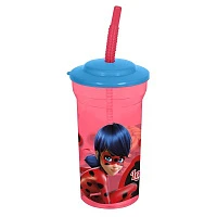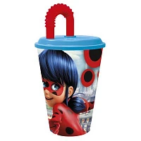 Стакан пластиковый с соломинкой и крышкой (спортивный, 430 мл). Леди Баг