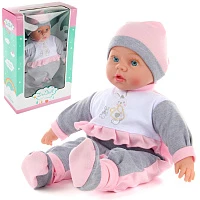 Пупс мягконаб., озвученный, в бежевом костюме, 40 см , русская озвучка