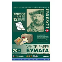 Бумага самоклеящаяся А4 50л. Lomond, белая, 10 фр. (105*59,4), 70г/м2