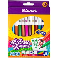Фломастеры Luxor "Coloring", 12цв, смываемые, картон, европодвес 6101/12 BOX