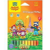 Фломастеры Мульти-Пульти "Енот во Франции", 24цв., смываемые, картон, европодвес