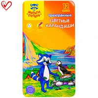 Карандаши цветные Мульти-Пульти "Енот-следопыт", 12цв., трехгр.,рисунок на корпусе, заточен., картон