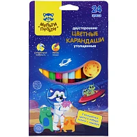 Карандаши цветные Мульти-Пульти "Енот в космосе" 24цв, 12шт., двусторонние, утолщенные, заточен., европодвес