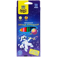 Карандаши цветные Мульти-Пульти "Енот в космосе", 12цв., трехгран., заточен., европодвес