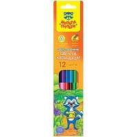Карандаши двусторонние "Енот в тропиках" 12цв., 6шт., трехгран., заточен., картон уп., европодвес CP_11657
