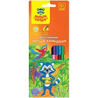 Карандаши двусторонние "Енот в тропиках" 24цв., 12шт., трехгран., заточен., картон уп., европодвес CP_11494
