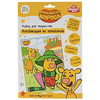 Оранжевая корова аппликация из помпонов, 17х23 см. MultiArt