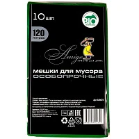 Мешки для мусора Амиго ПВД 120л,70 мкм, зеленый, биоразлагаемый, 10шт/рул.