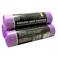 Мешки для мусора с завязками 60л ПНД, 60x70, фиолетовый,20 шт/рул.