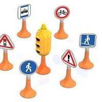 Набор Дорожные знаки №3 светофор, 6 знаков, 2 машинки Нордик 887