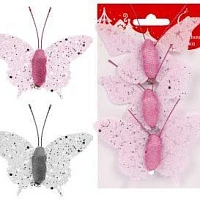 Елочное украшение Бабочки 8 см., 3 шт, в ассортименте