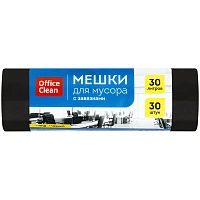 Мешки для мусора 30л OfficeClean ПНД, 50*60см, 8мкм, 30шт., черные, в рулоне, с завязками