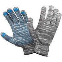 Перчатки х/б 10 класс OfficeClean, люкс, с точечным ПВХ, 4 нити, серые, 50-52г, 133 текс
