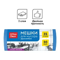 Мешки для мусора 35л OfficeClean ПВД, 50*60см, 30мкм, 20шт., двухслойные, особо прочные, синие, в рулоне