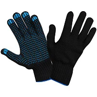 Перчатки х/б 10 класс OfficeClean, люкс, с точечным ПВХ, 4 нити, черные, 50-52г, 133 текс