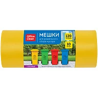 Мешки для раздельного сбора мусора 120л OfficeClean ПВД, 70*108см, 38мкм, 10шт., прочные, желтые, в рулоне
