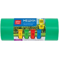 Мешки для раздельного сбора мусора 120л OfficeClean ПВД, 70*108см, 38мкм, 10шт., прочные, зеленые, в рулоне