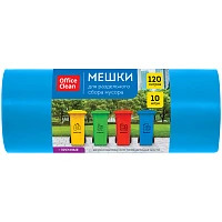 Мешки для раздельного сбора мусора 120л OfficeClean ПВД, 70*108см, 38мкм, 10шт., прочные, синие, в рулоне